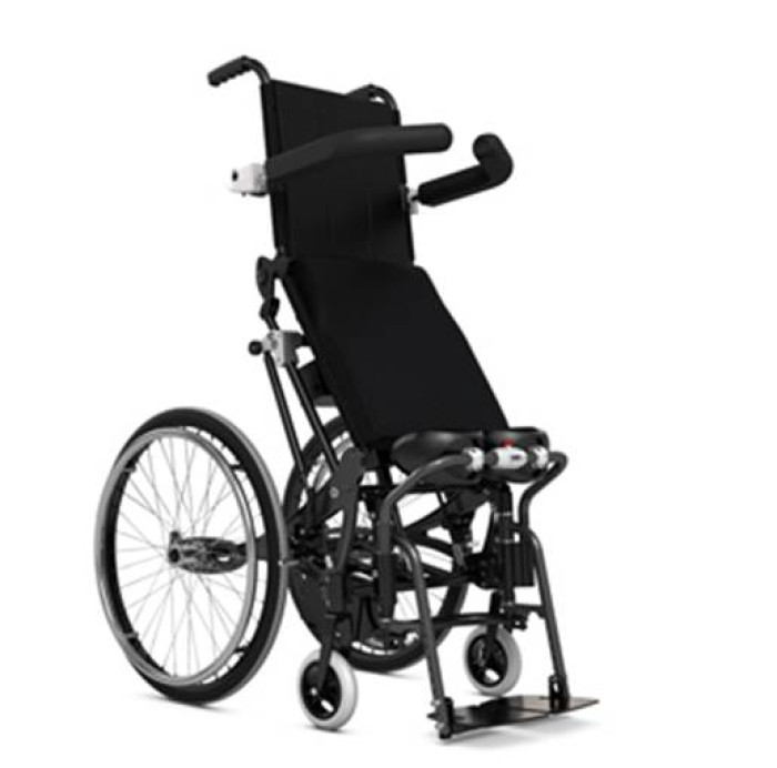 Invalīdu riteņkrēsls ar stiprinājumiem pacienta vertikalizēšanai sensomotorai mobilizēšanai (cilvēkiem 1,60-1,70 m auguma). Elektriska vadība (ar mugurējo piedziņu). Izcelsmes valsts - ES